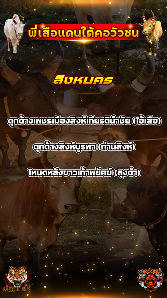 ทีเด็ดวัวชน วันที่01/02/69 สนามชนโคสิงหนคร