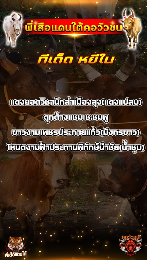 ทีเด็ดวัวชน วันที่03/10/68 สนามชนโคบ้านหยีใน