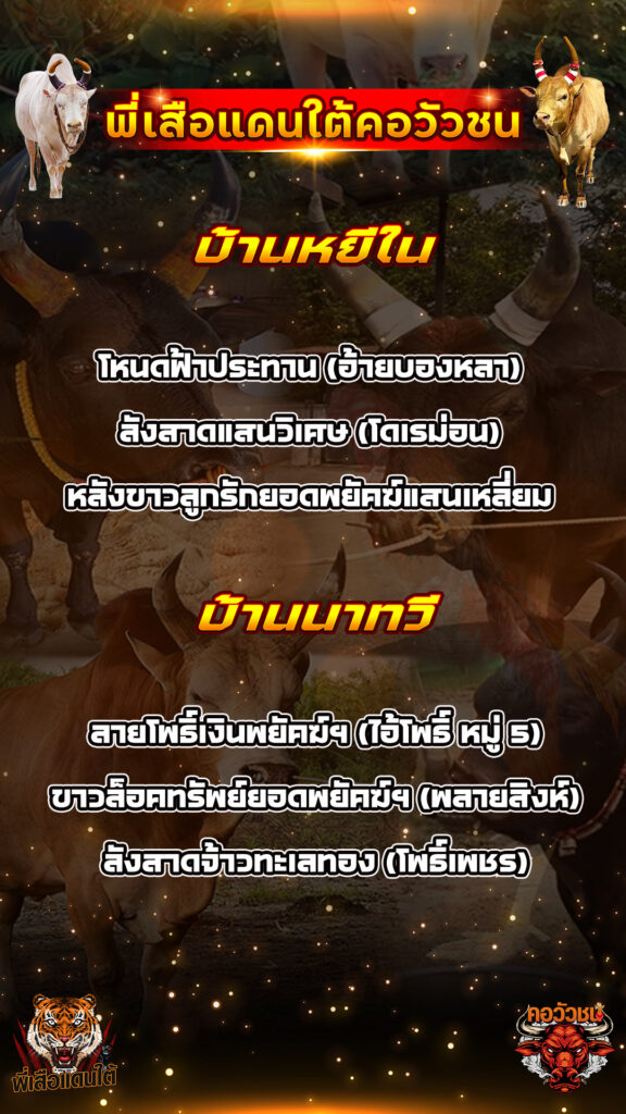 ทีเด็ดวัวชน วันที่04/02/69 สนามชนโคเขาแก้ว-นาทวี