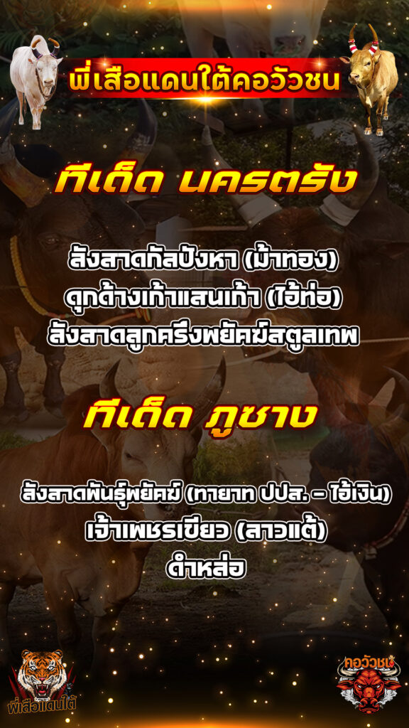 ทีเด็ดวัวชน วันที่05/01/69 สนามชนโคนครตรัง-นานาชาติ ภูซาง