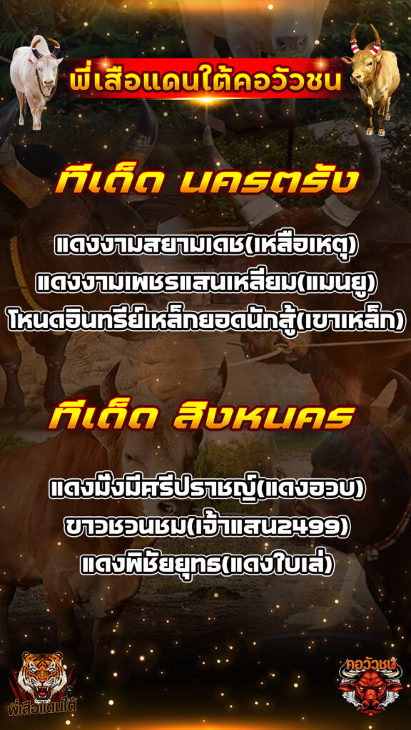 ทีเด็ดวัวชน วันที่06/01/69 สนามชนโคนครตรัง-สิงหนคร