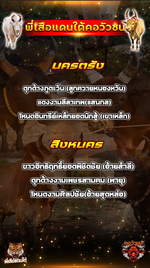 ทีเด็ดวัวชน วันที่07/04/69 สนามชนโคสิงหนคร-นครตรัง