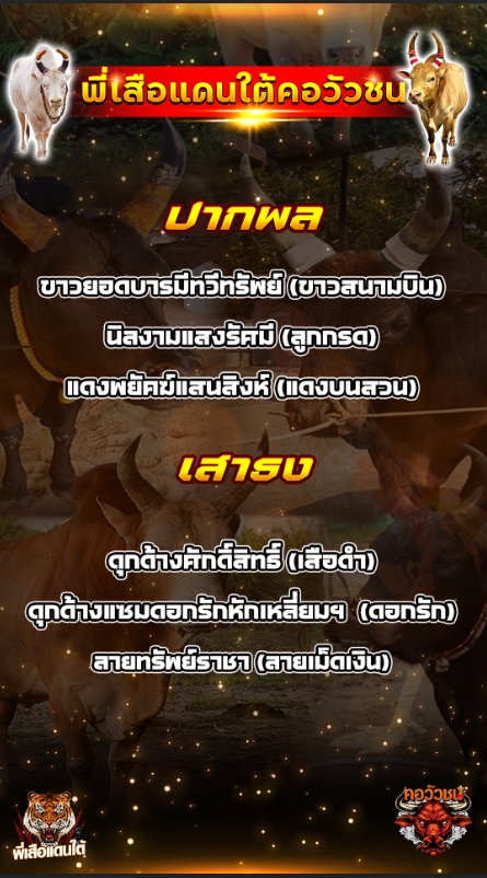 ทีเด็ดวัวชน วันที่13/03/69 สนามชนโคปากพล-เสาธง