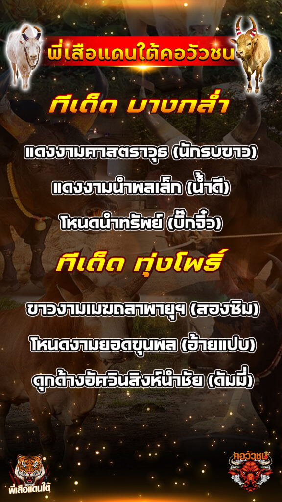 ทีเด็ดวัวชน วันที่15/11/68 สนามชนโคบางกล่ำ-ทุ่งโพธิ์