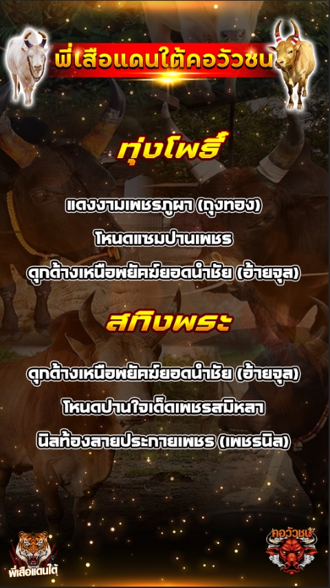ทีเด็ดวัวชน วันที่17/03/69 สนามชนโคทุ่งโพธิ์ – สทิงพระ
