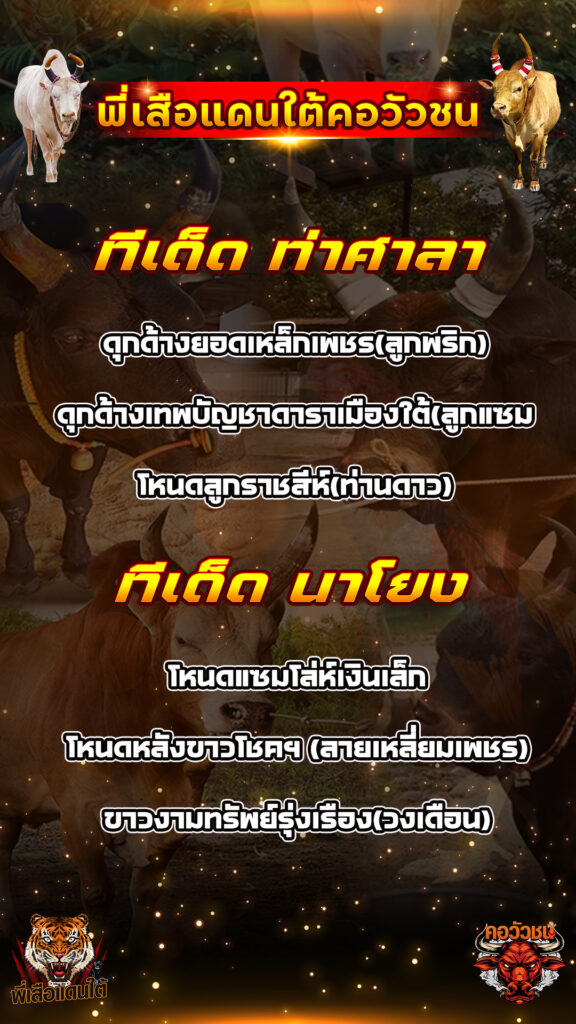 ทีเด็ดวัวชน วันที่21/01/69 สนามชนโคนาโยง-ท่าศาลา