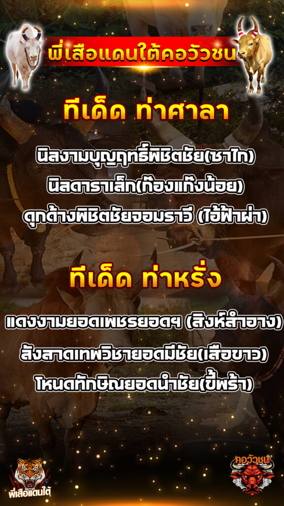 ทีเด็ดวัวชน วันที่21/09/68 สนามชนโคท่าหรั่ง-ท่าศาลา