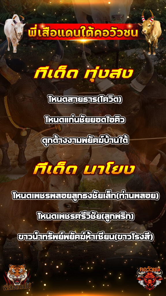 ทีเด็ดวัวชน วันที่22/01/69 สนามชนโคนาโยง-ทุ่งสง