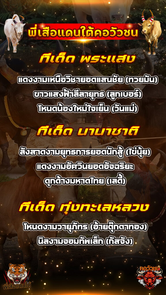 ทีเด็ดวัวชน วันที่25/01/69 สนามชนโคนานาชาติ-พระแสง-ทุ่งทะเลหลวง