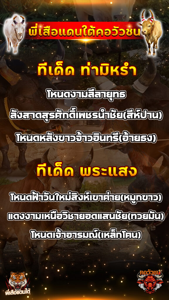 ทีเด็ดวัวชน วันที่25/09/68 สนามชนโคท่ามิหรำ-สนามพระแสง