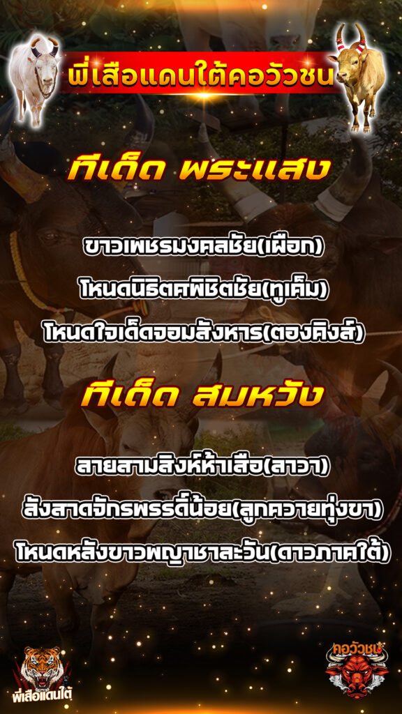 ทีเด็ดวัวชน วันที่25/11/68 สนามชนโคพระแสง-สมหวัง
