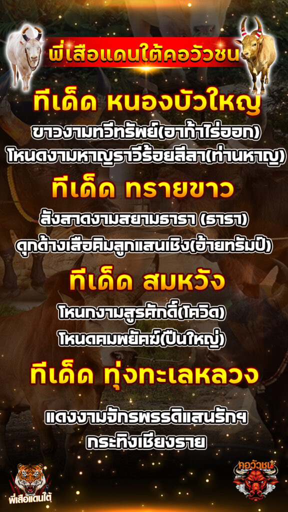 ทีเด็ดวัวชน วันที่28/09/68 สนามชนโคทรายขาว-สนามหนองบัวใหญ่-สมหวัง-ทุ่งทะเลหลวง