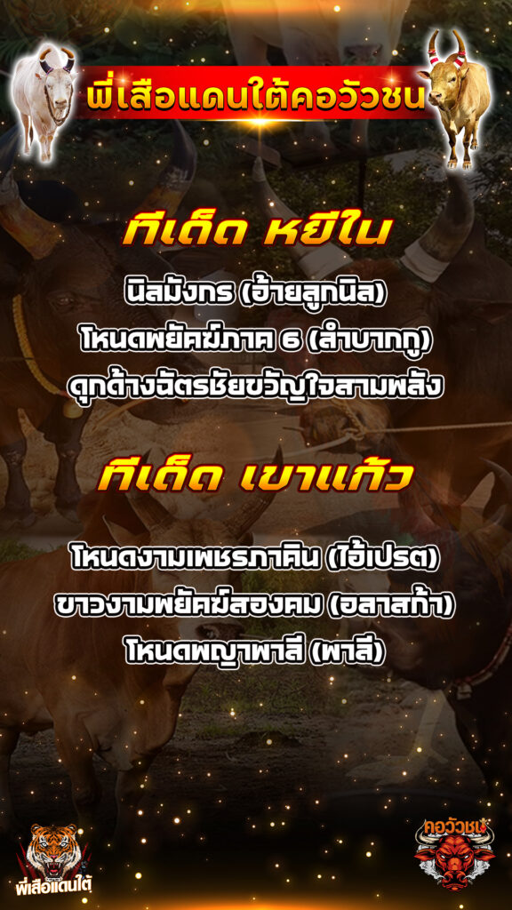 ทีเด็ดวัวชน วันที่3/12/68 สนามชนโคบ้านเขาแก้ว-หยีใน