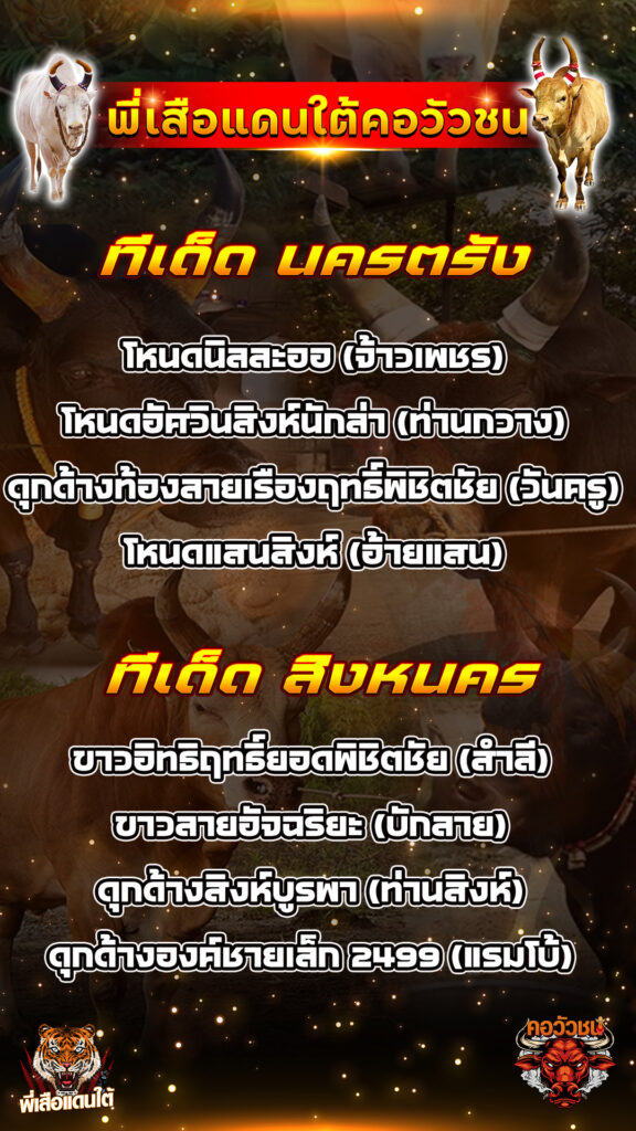 ทีเด็ดวัวชน วันที่6/12/68 สนามชนโคนครตรัง-สิงหนคร