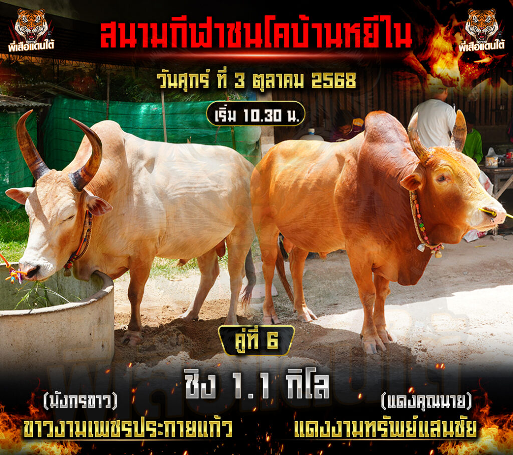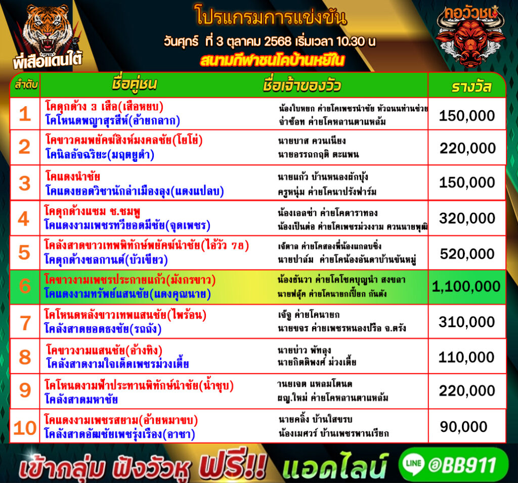 โปรแกรมวัวชน วันที่03/10/68 สนามชนโคบ้านหยีใน