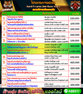 ปฎิทินวัวชน ประจำเดือนตุลาคม 2568