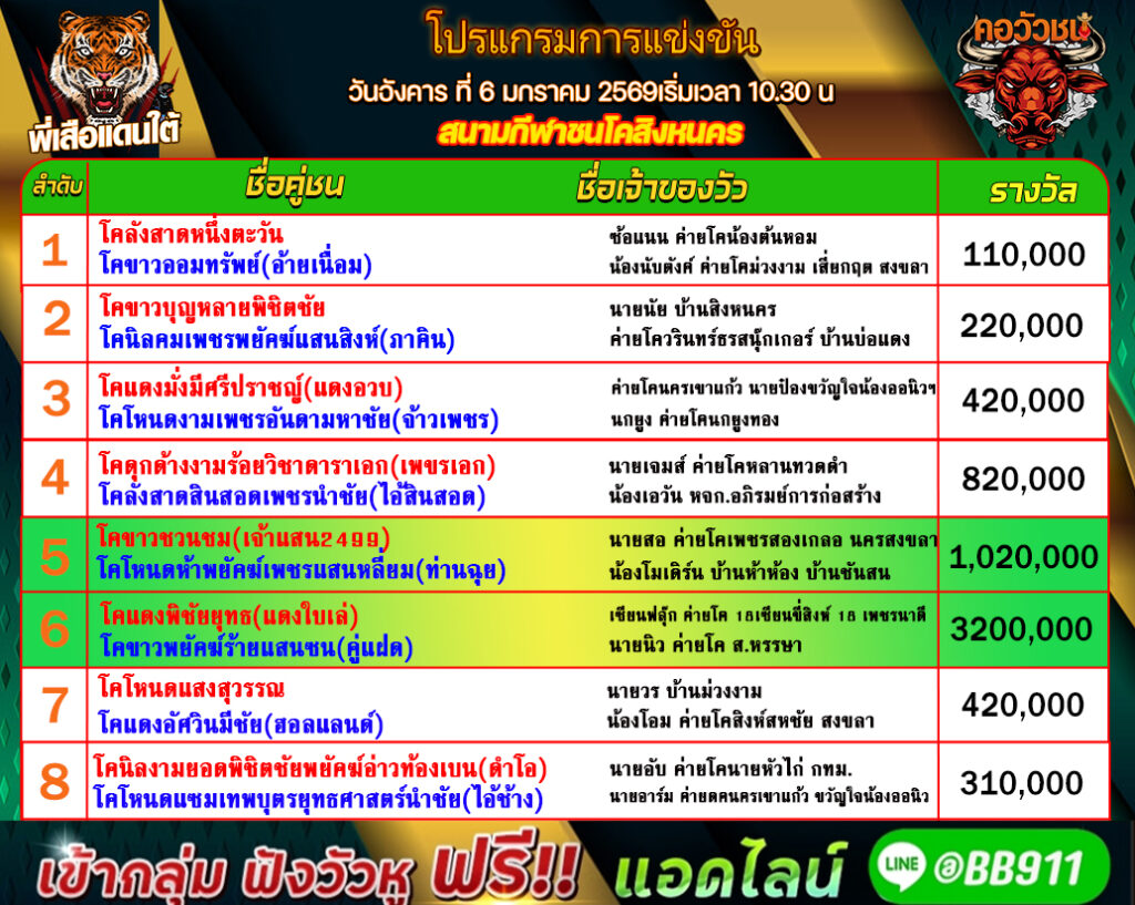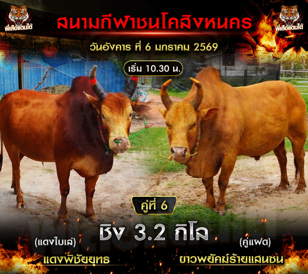 โปรแกรมวัวชน วันที่06/01/69 สนามชนโคสิงหนคร