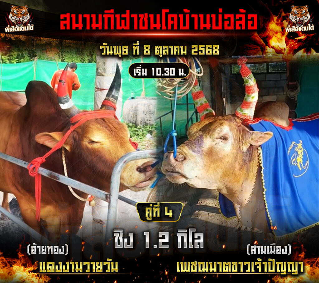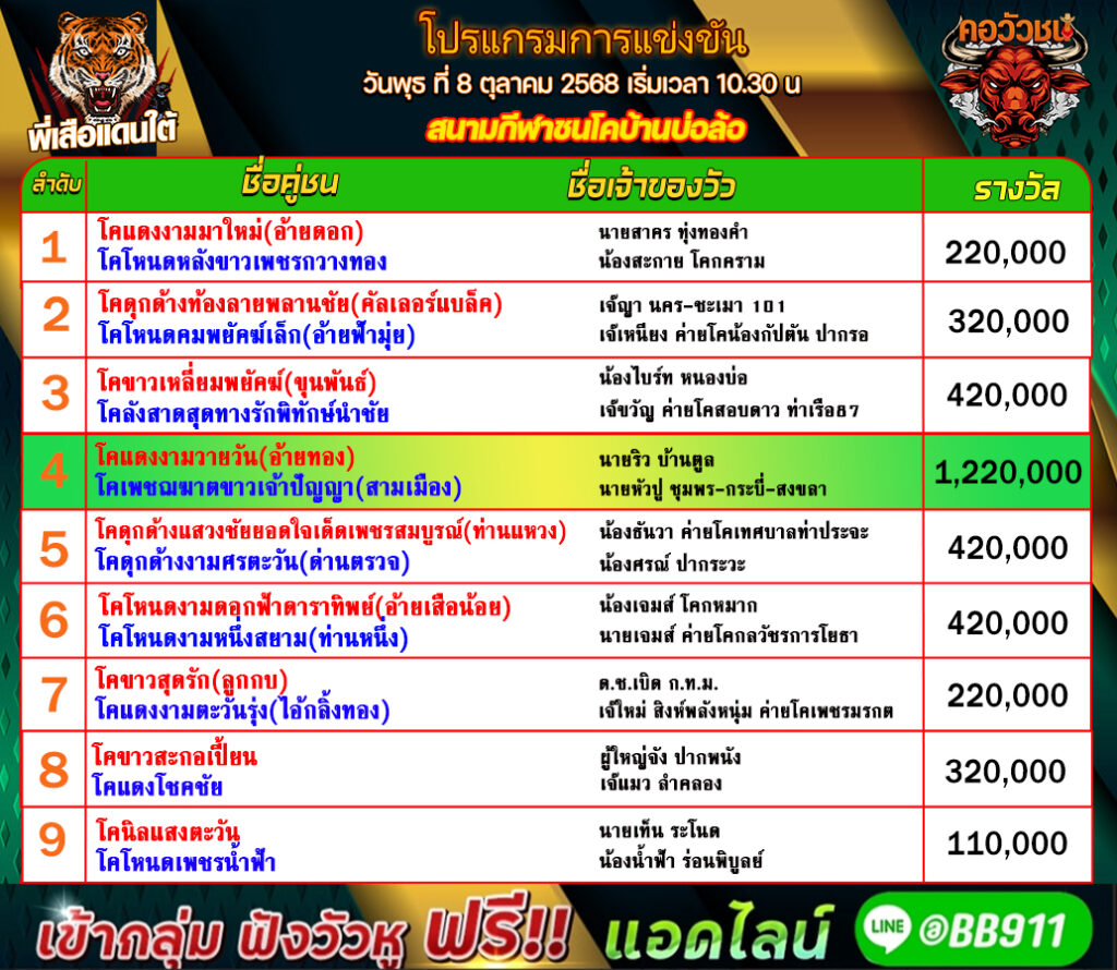 โปรแกรมวัวชน วันที่08/10/68 สนามชนโคบ้านบ่อล้อ