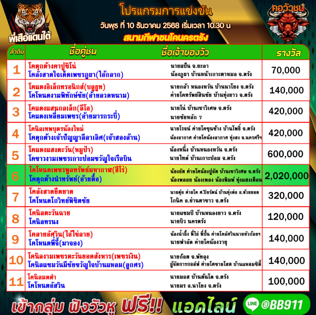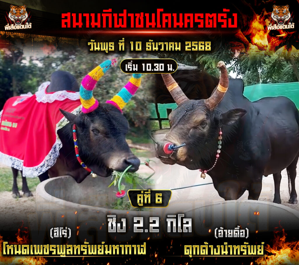 โปรแกรมวัวชน วันที่10/12/68 สนามชนโคนครตรัง