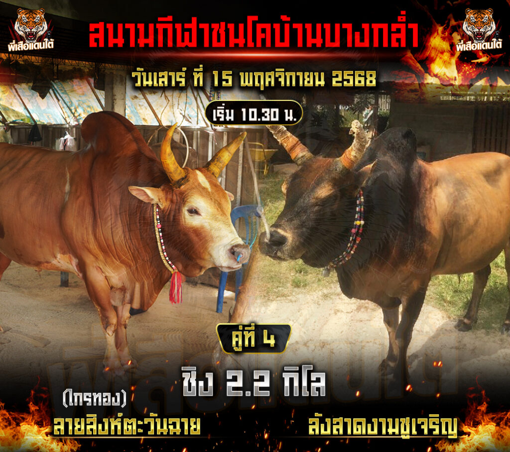 โปรแกรมวัวชน วันที่15/11/68 สนามชนโคบ้านบางกล่ำ