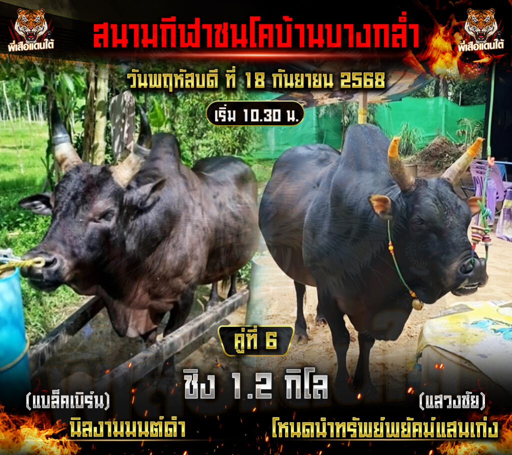 โปรแกรมวัวชน วันที่18/09/68 สนามชนโคบ้านบางกล่ำ