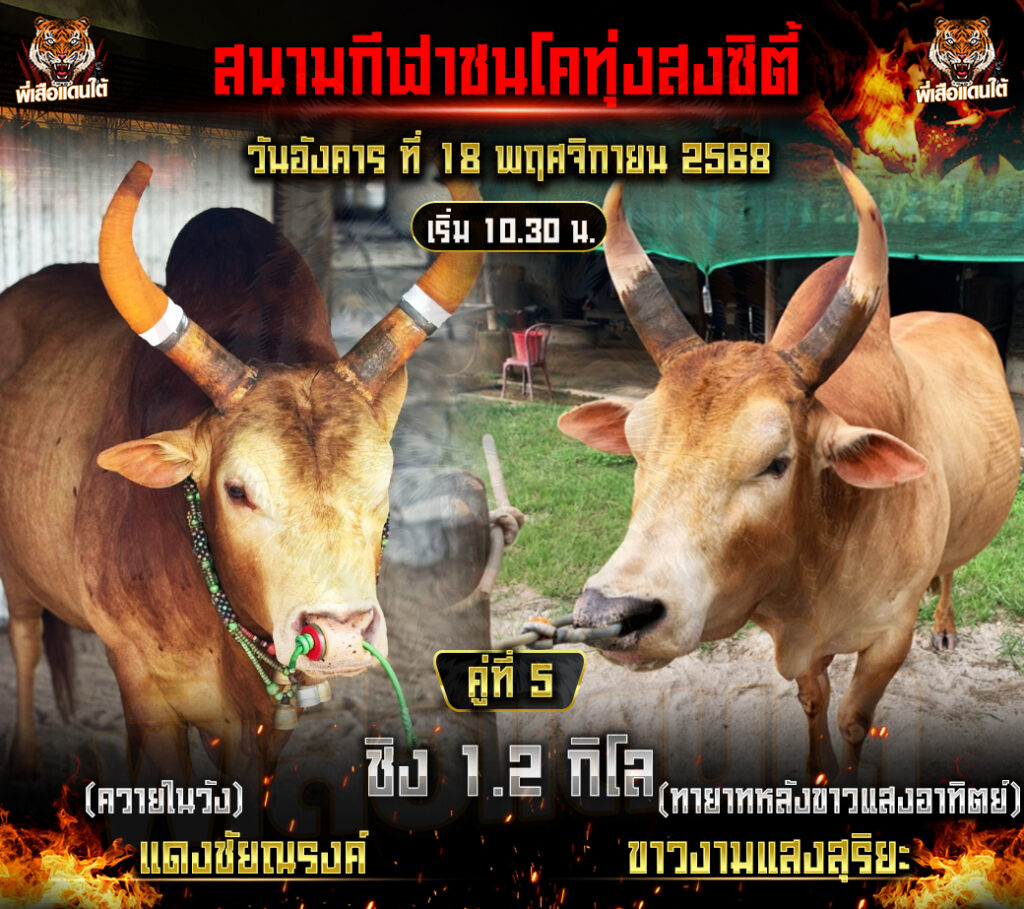 โปรแกรมวัวชน วันที่18/11/68 สนามชนโคทุ่งสง ซิตี้