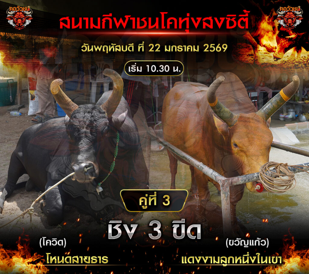 โปรแกรมวัวชน วันที่21/01/69 สนามชนโคทุ่่งสง ซิตี้