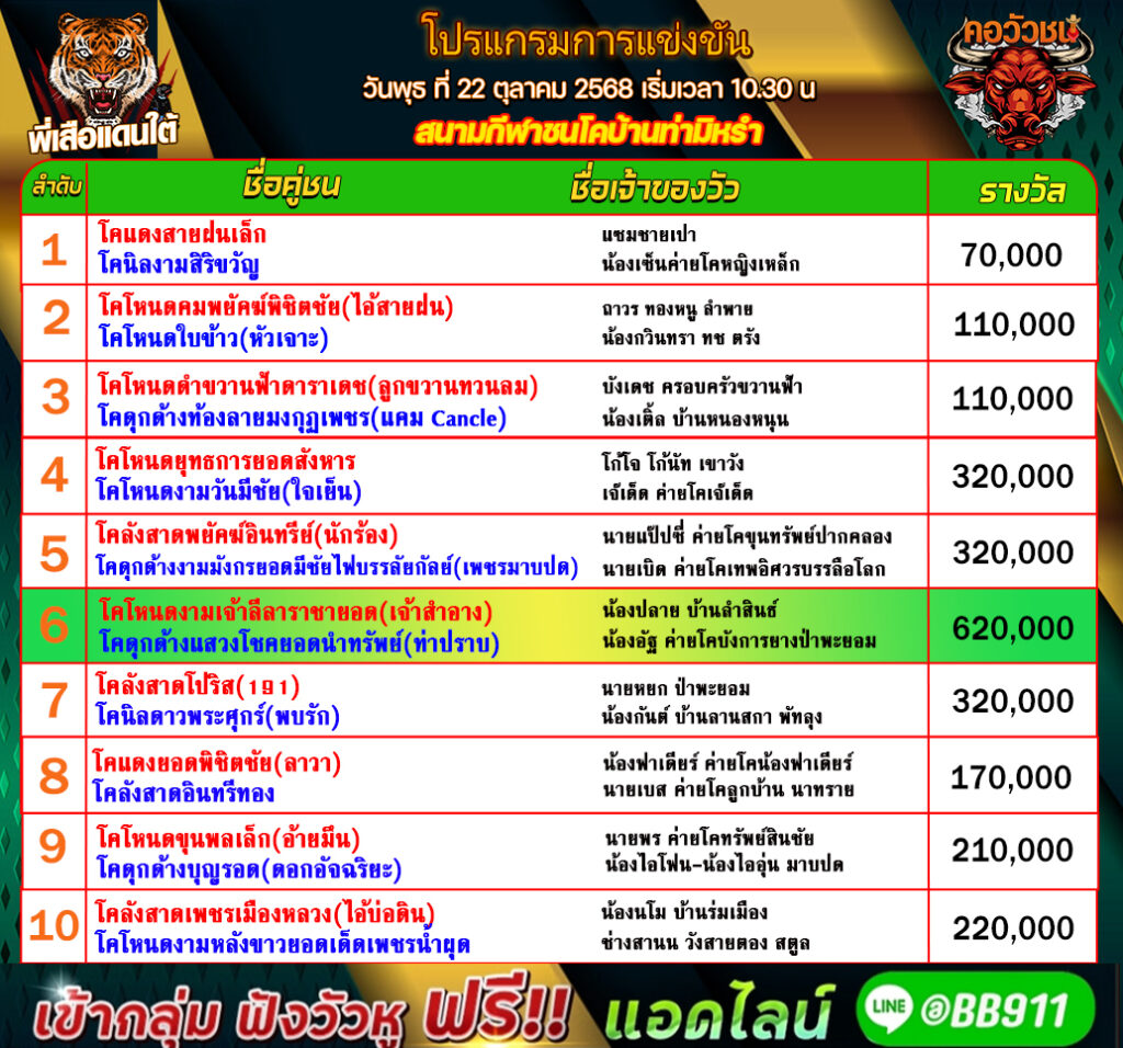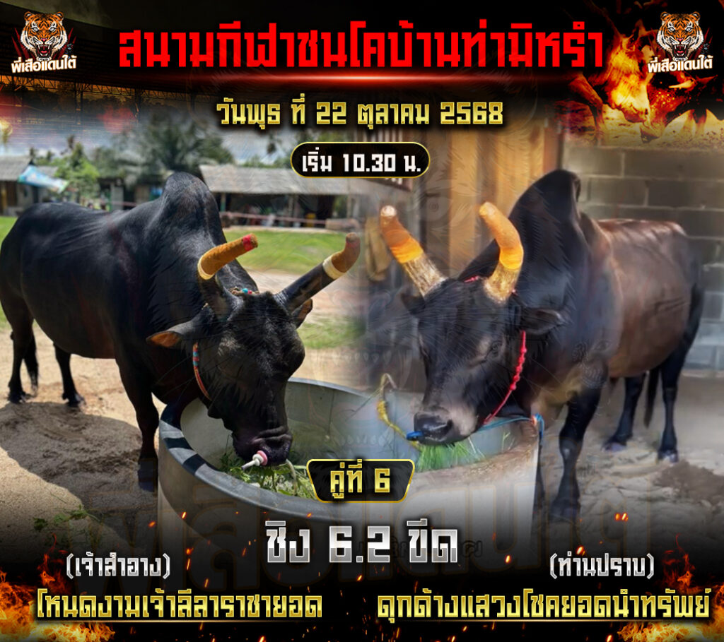 โปรแกรมวัวชน วันที่22/10/68 สนามชนโคบ้านท่ามิหรำ