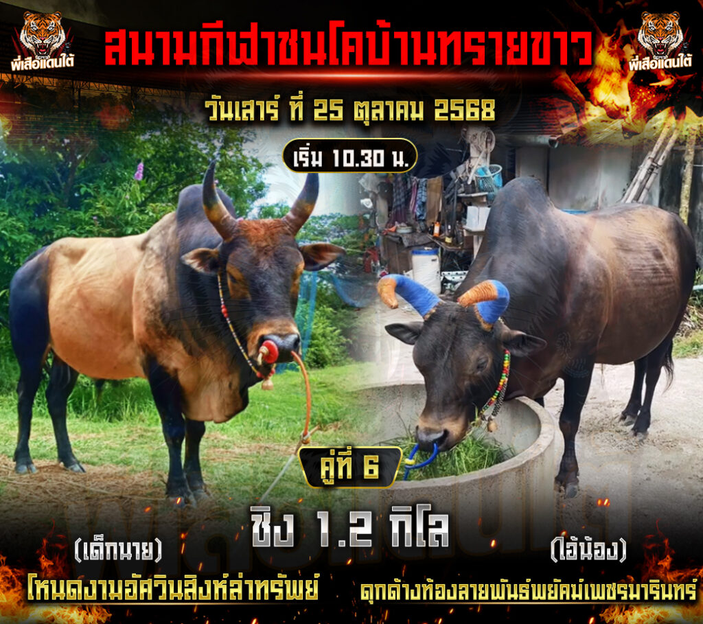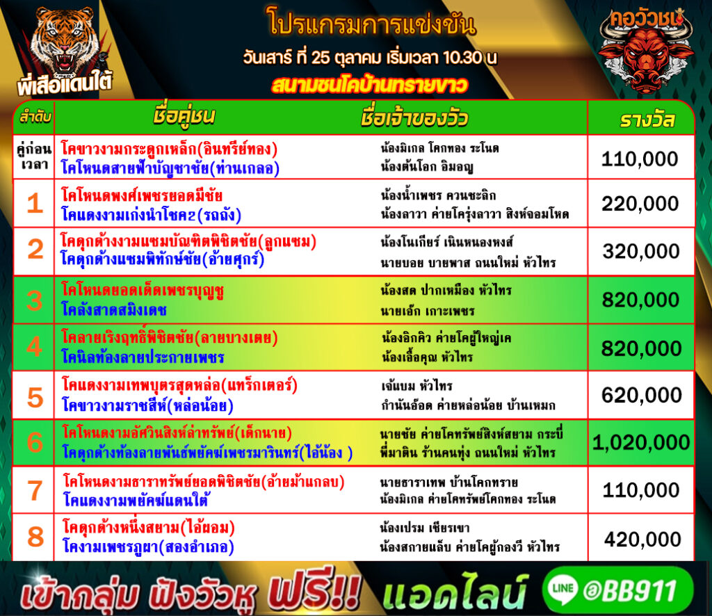 โปรแกรมวัวชน วันที่25/10/68 สนามชนโคบ้านทรายขาว