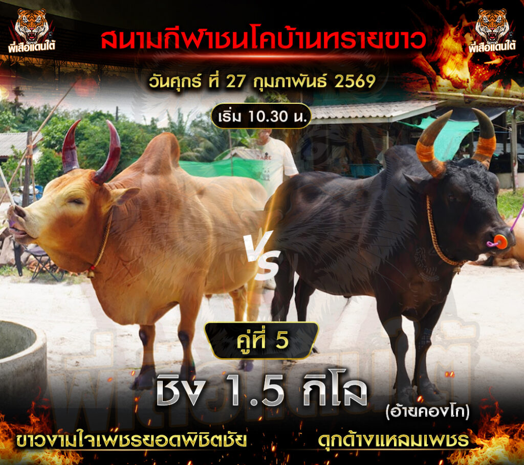 โปรแกรมวัวชน วันที่27/02/69 สนามชนโคทรายขาว