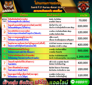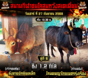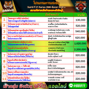 โปรแกรมวัวชน วันที่27/09/68 สนามชนโคหนองบัวใหญ่-สนามสมหวัง-สนามทรายขาว-สนามทุ่งทะเลหลวง