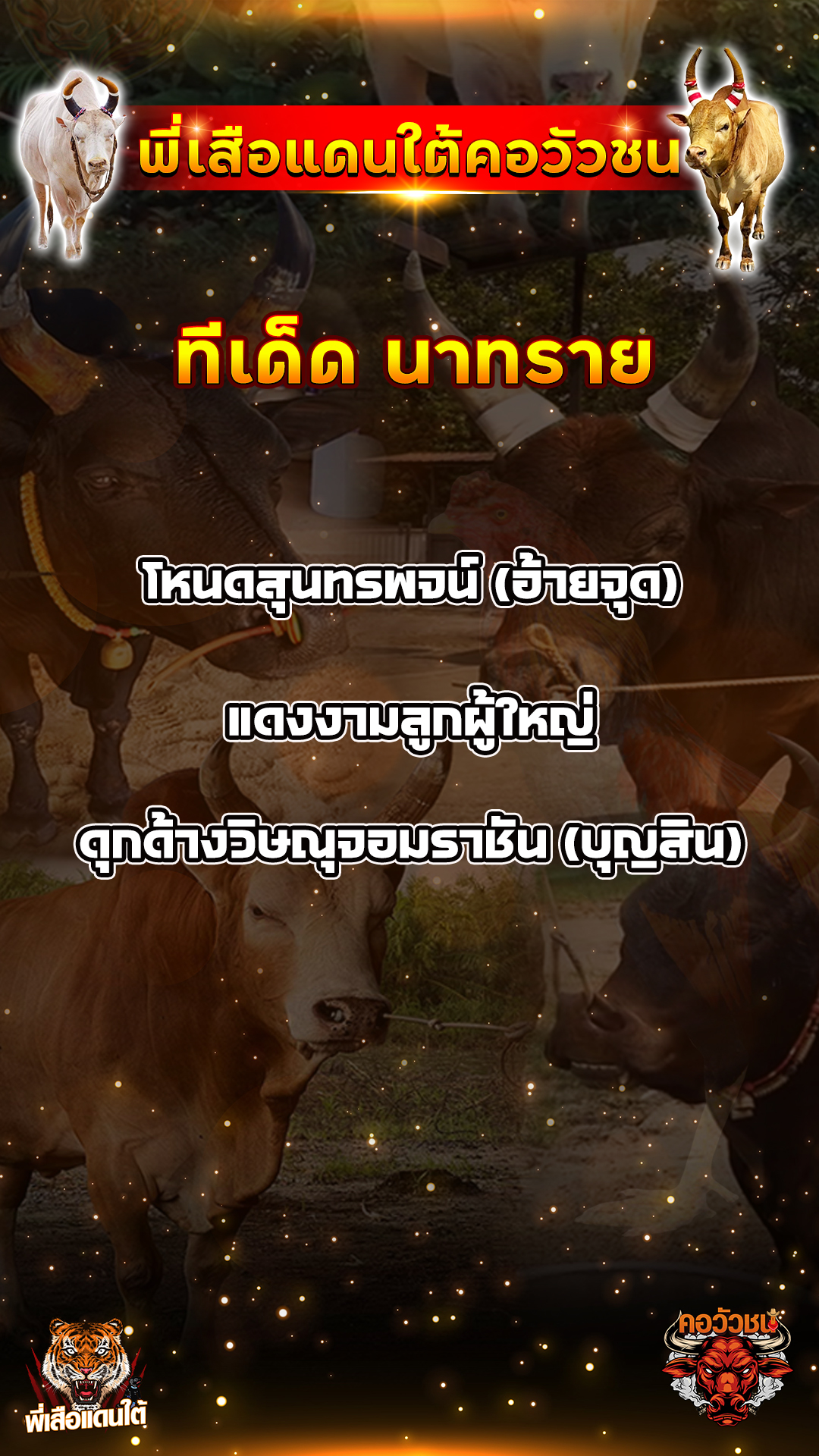 ทีเด็ดวัวชน วันที่19/09/68 สนามชนโคบ้านนาทราย เข้าเล่นวัวชนสด คลิ๊กhttps://lin.ee/fZLVpK6 หรือ@BB911 มีตัว@ข้างหน้ากันนะครับ admin03 19 กันยายน 2025