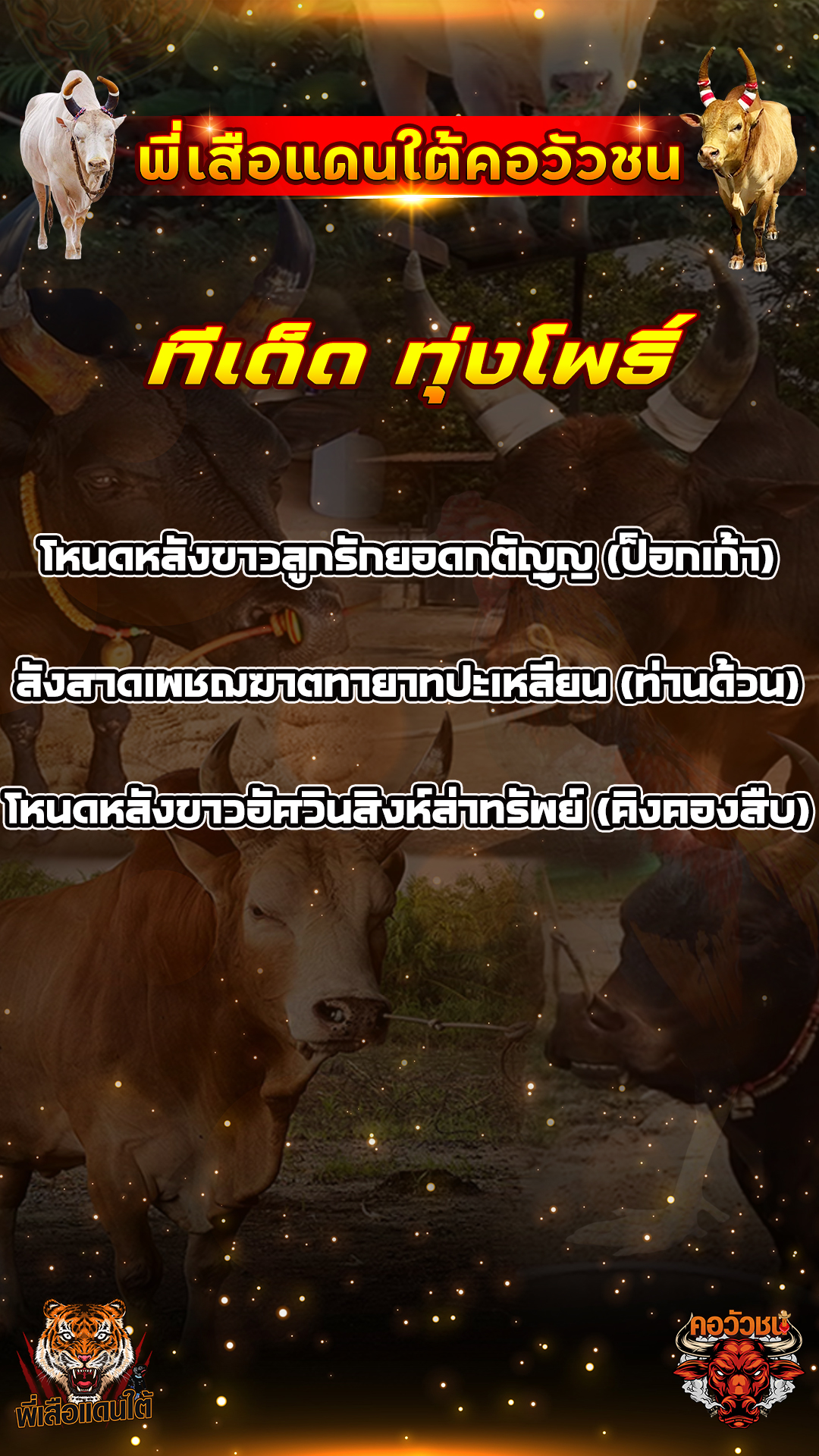 ทีเด็ดวัวชน วันที่15/01/69 สนามชนโคทุ่งโพธิ์ สเตเดี๊ยม เข้าเล่นวัวชนสด คลิ๊กhttps://line.me/R/ti/p/@bb911 หรือ@BB911 มีตัว@ข้างหน้ากันนะครับ admin03 15 มกราคม 2026