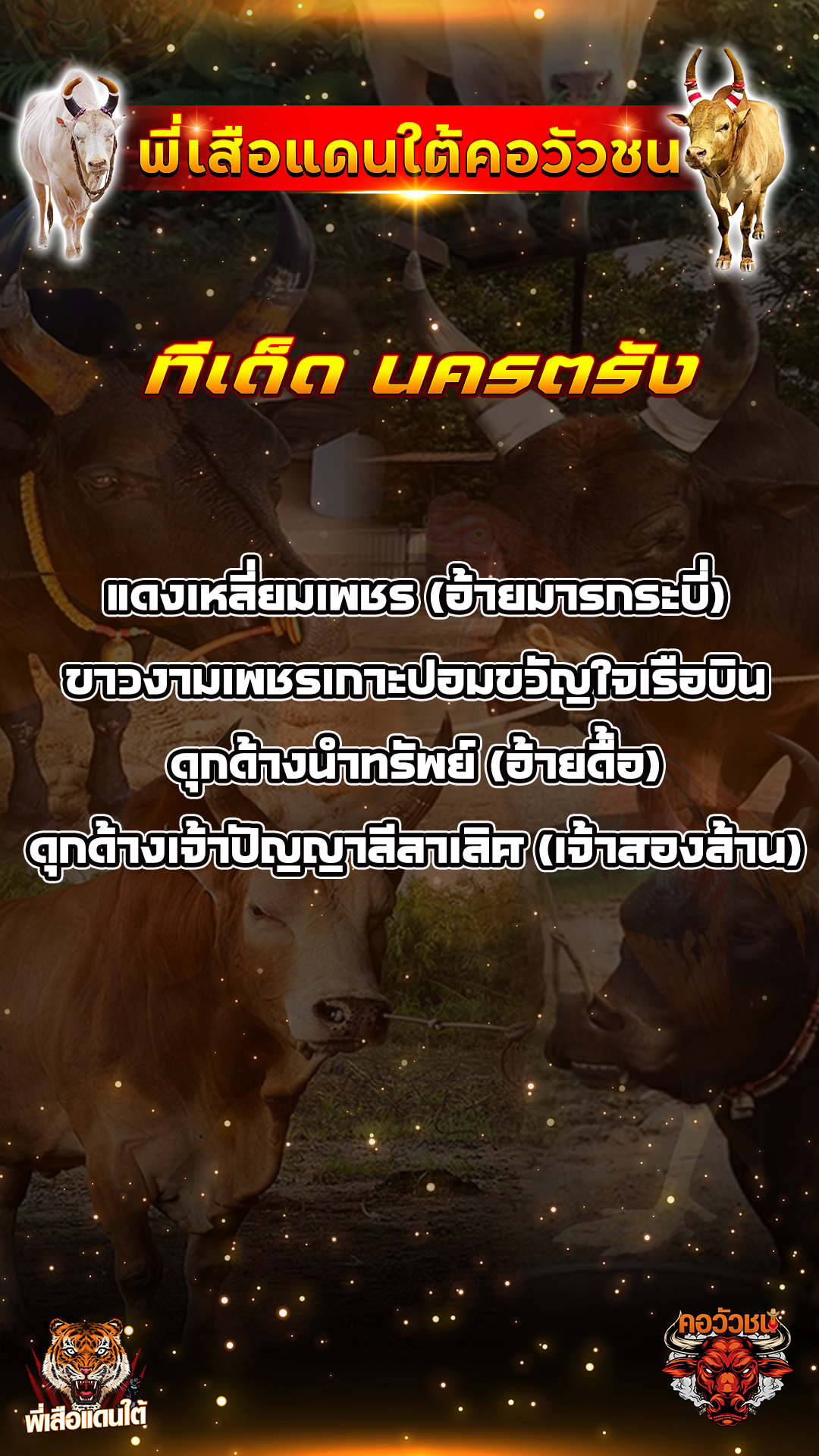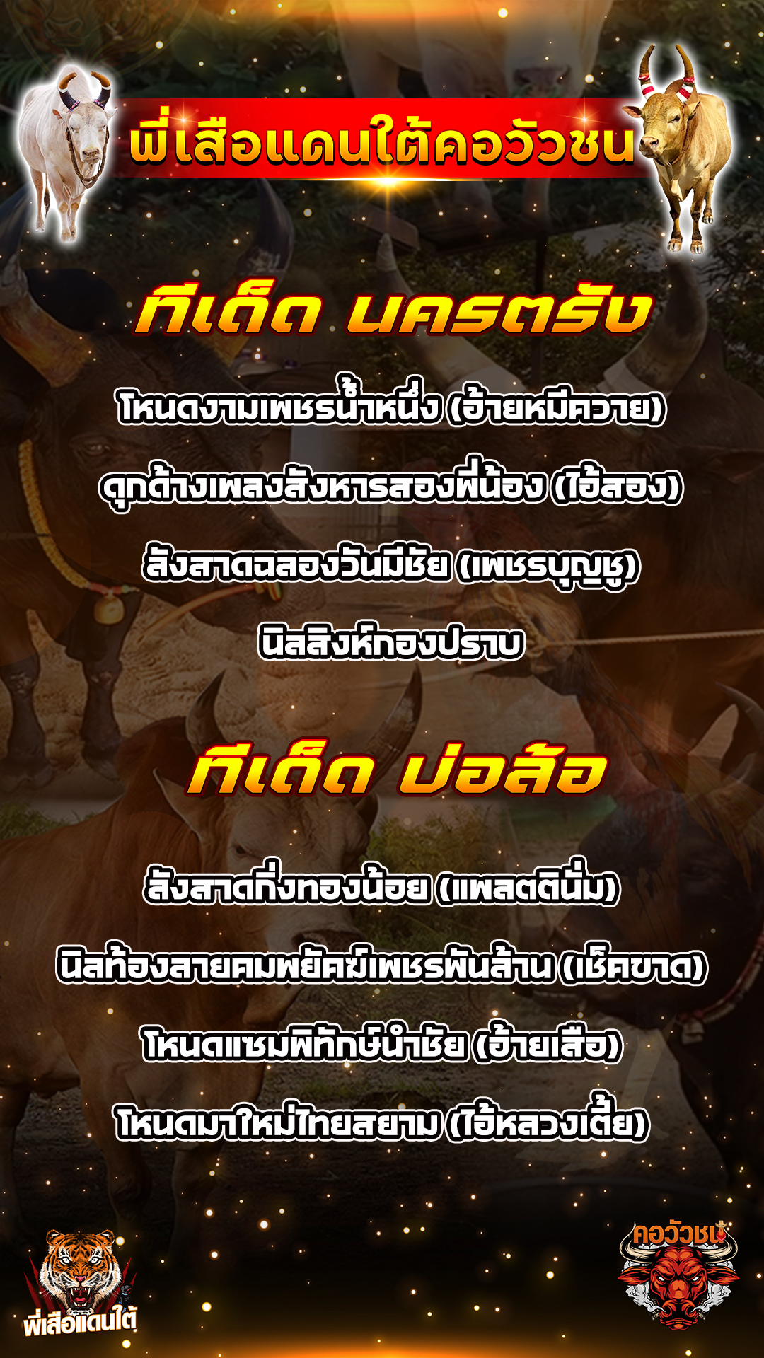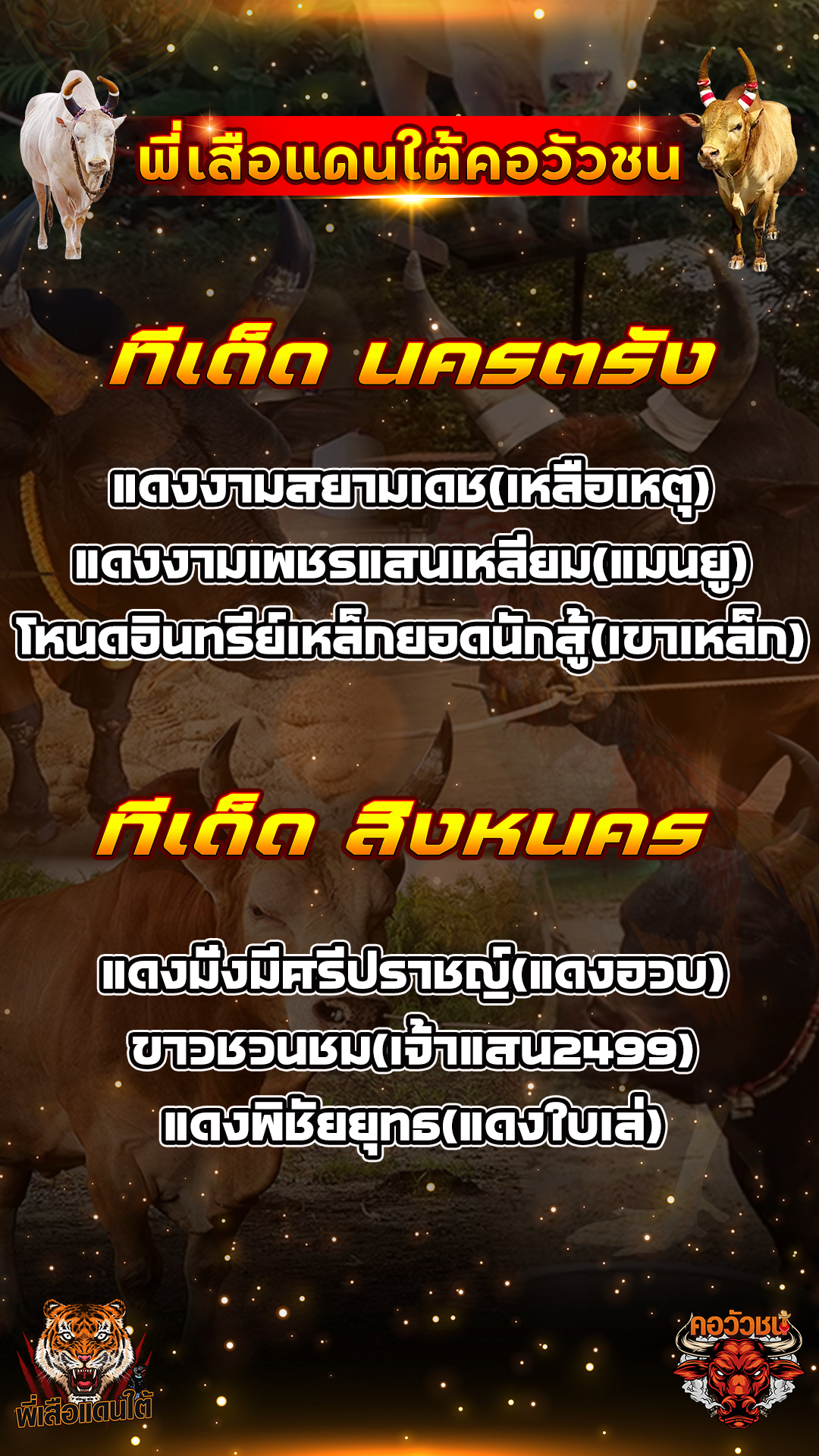 ทีเด็ดวัวชน วันที่14/11/68 สนามชนโคเสาธง-นาทวี เข้าเล่นวัวชนสด คลิ๊กhttps://lin.ee/fZLVpK6 หรือ@BB911 มีตัว@ข้างหน้ากันนะครับ admin03 14 ธันวาคม 2025