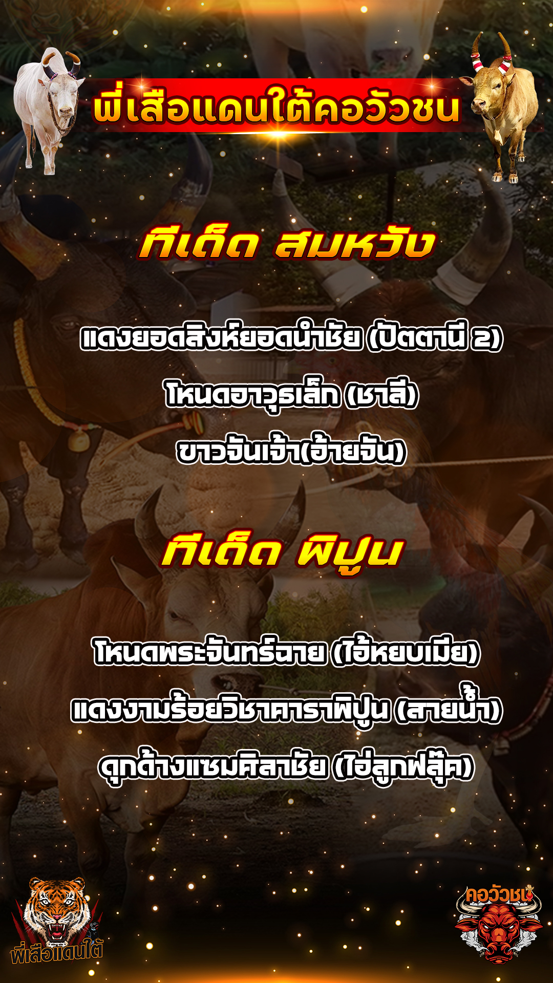 ทีเด็ดวัวชน วันที่25/01/69 สนามชนโคนานาชาติ-พระแสง-ทุ่งทะเลหลวง เข้าเล่นวัวชนสด คลิ๊กhttps://line.me/R/ti/p/@bb911 หรือ@BB911 มีตัว@ข้างหน้ากันนะครับ admin03 25 มกราคม 2026
