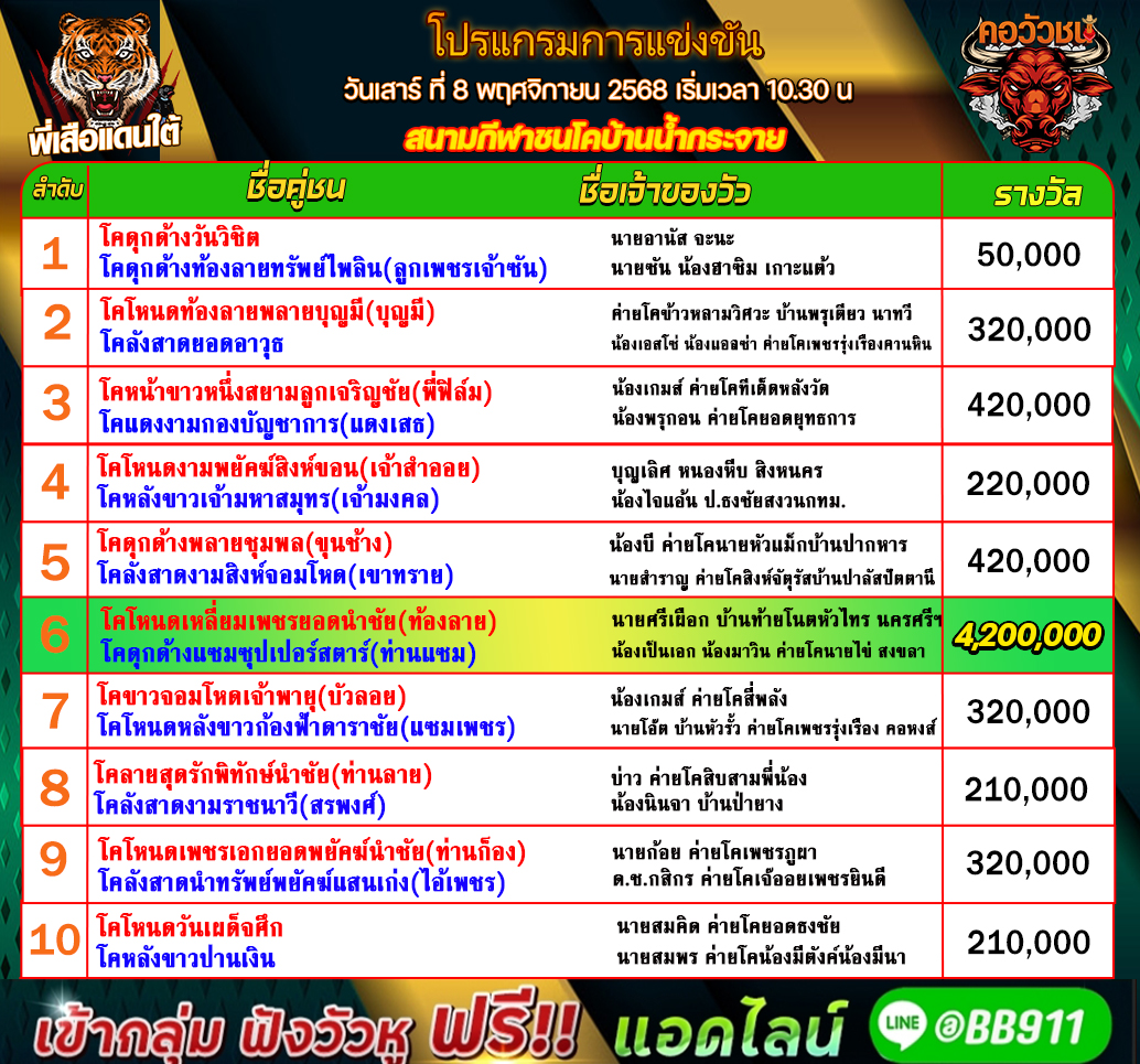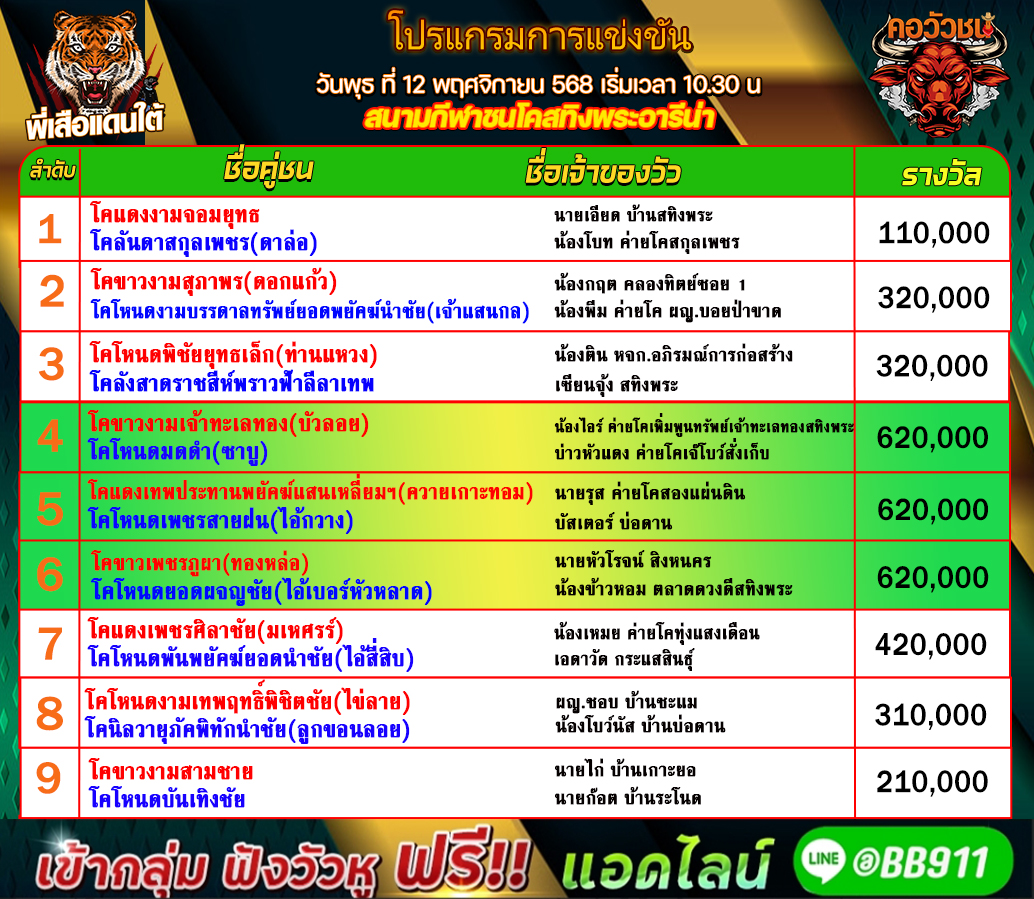 โปรแกรมวัวชน วันที่12/11/68 สนามชนโคสทิงพระอารีน่า คู่เอก เข้าเล่นวัวชนสด คลิ๊กhttps://lin.ee/fZLVpK6 หรือ@BB911 มีตัว@ข้างหน้ากันนะครับ admin03 11 พฤศจิกายน 2025